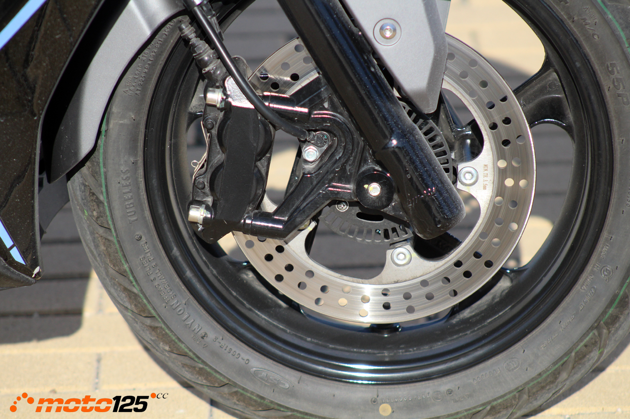 Los neumáticos van firmados por CST. Cuentan con buena sección (120 mm delante y 130 detrás bajo perfil 70%) de banda de rodadura y en seco dan confianza, pero con firme frío y mojado conviene recelar.