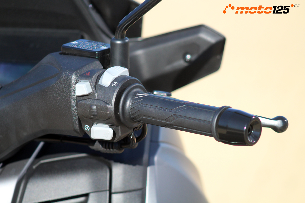 Su medio natural es la ciudad. Es donde mejor se encuentra mostrando una excelente manejabilidad y agilidad para moverse hasta en horas punta, pero no te confíes, porque los espejos retrovisores se asoman más allá de la punta de los contrapesos del manillar y será fácil golpearlos contra los coches. La contribución de Bosch en el motor Loncin se nota. Es un motor más lleno en todos los regímenes que el que equipa su hermano el Max T, respondiendo de inmediato a cualquier golpe de gas, y eso está bien para salir catapultado en la salida de los semáforos. Pero de ahí a declarar los 14,5 CV nos parece demasiado. Bien por el sistema de parada a ralentí que ha mejorado mucho en respuesta respecto a otras versiones del motor Loncin.