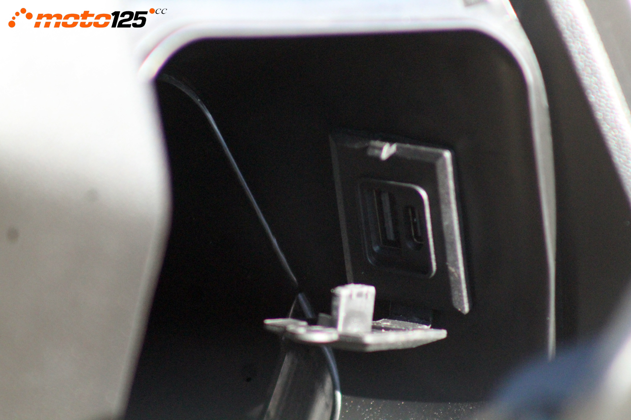 Hay dos guanteras en el contraescudo sin protección por cerradura, disponiendo **la de la izquierda de una mayor profundidad y una toma USB para cargar sobre la marcha el móvil.