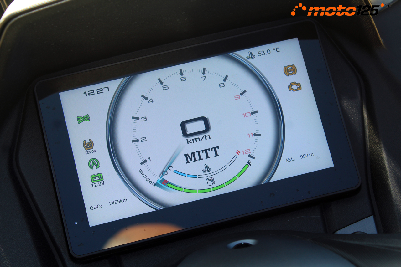 El T-Rox 125 apareció a los pocos meses con una mayor presencia y envergadura -sin llegar a empatar con los modelos Gran Turismo- además de aumentar el equipamiento tecnológico. Lo primero que llama la atención es el cuadro de instrumentos, y a él le dedicamos nuestro apartado “El detallazo”.