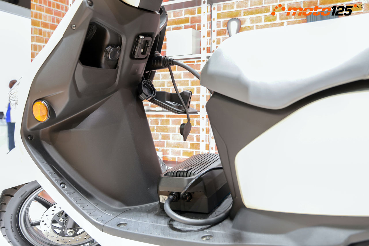 El motor de 4,1 kW se integra con la transmisión en un bloque que hace de basculante disponiendo de baterías LFP de litio de 3,07 kWh que se recargan en 6,7 horas al 100% y permiten una autonomía de 80 km. Su peso es bastante ligero para lo que se estila en un scooter eléctrico: 122 kilos.