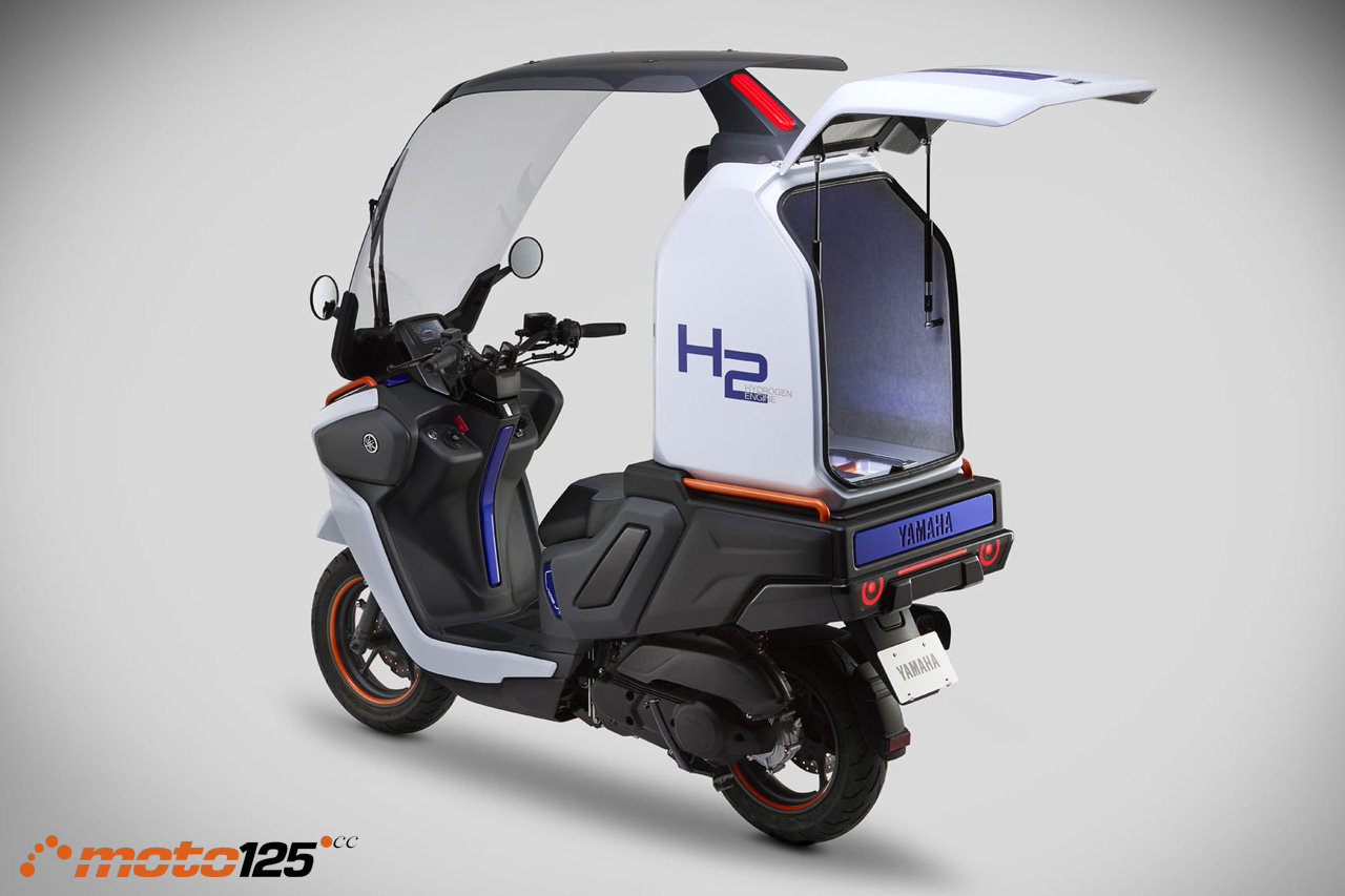 Yamaha también apuesta por los motores de explosión que utilizan como combustible el gas hidrógeno, y ha colaborado con Toyota para desarrollar este vehículo de reparto que emplea un depósito de hidrógeno compacto a alta presión, ideal para motocicletas y scooters, que está completamente homologado para emplearlo en vehículos comerciales.